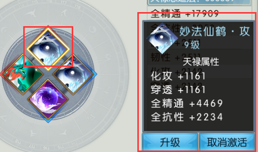 点击界面中的某个天禄,可查看该天禄的等级和天禄属性。